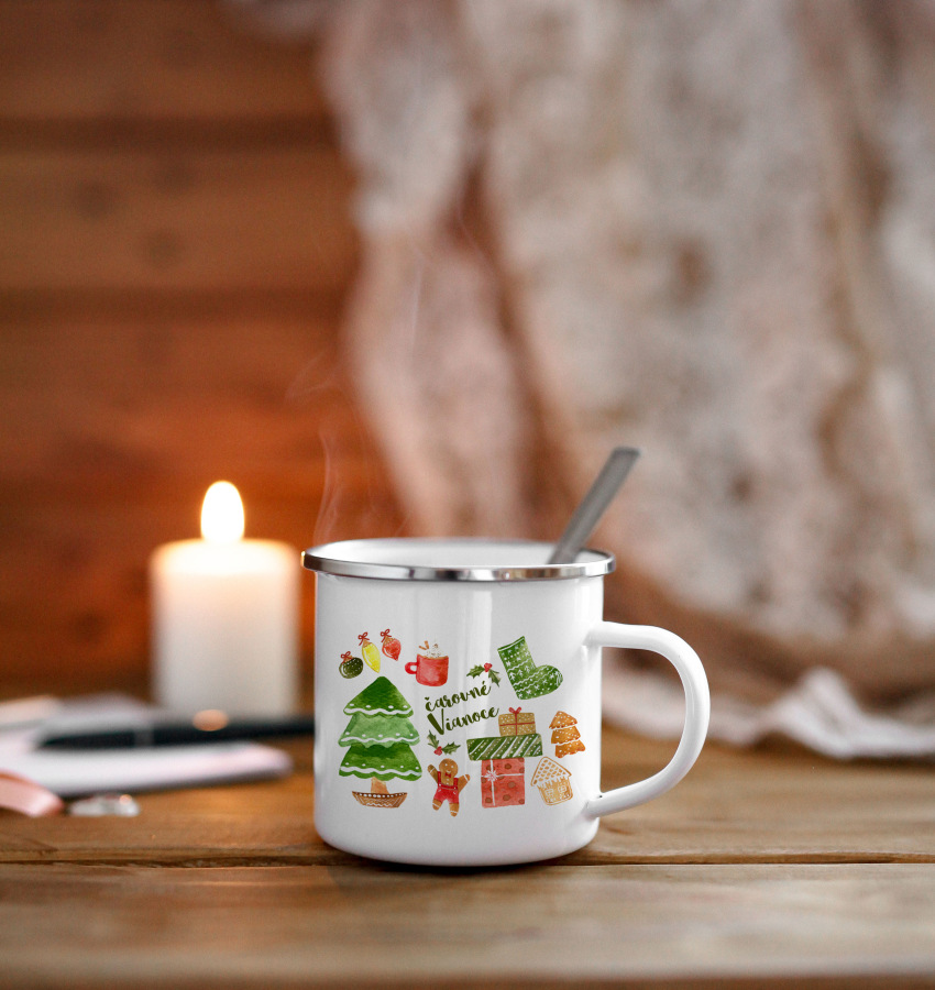 Trvanlivý materiál: Hrnčeky sú vyrobené z kvalitného smaltovaného plechu, ktorý je odolný voči opotrebeniu a ideálny pre každodenné použitie – či už na horúcu čokoládu, čaj s rumom, alebo punč.